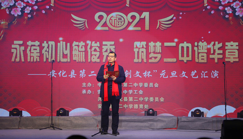 汇演伊始,刘仁先校长代表学校发表新年贺词。刘校长表示:2020年是学校不断进步的一年,取得了令人鼓舞的成绩。2021年,全体二中人将继续不忘初心,砥砺前行。