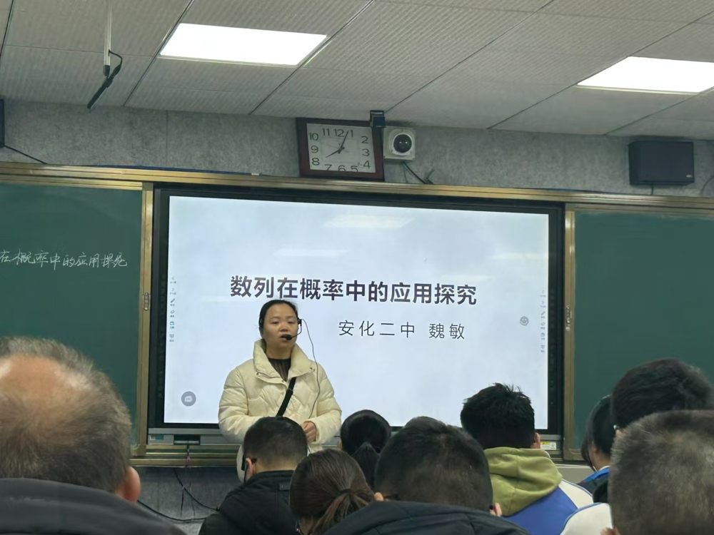 12月8日,第二场活动在益阳市第一中学开展。项目主持人魏敏老师与参会教师共同交流了《数列在概率中的应用探究》,从教学内容整合、作业分层设计及学生思维培养等方面展开深入探讨,体现了项目研究中“以学生发展为本”的基本理念,强化了数学知识与现实问题的联系,提升了教学与作业的实效性。